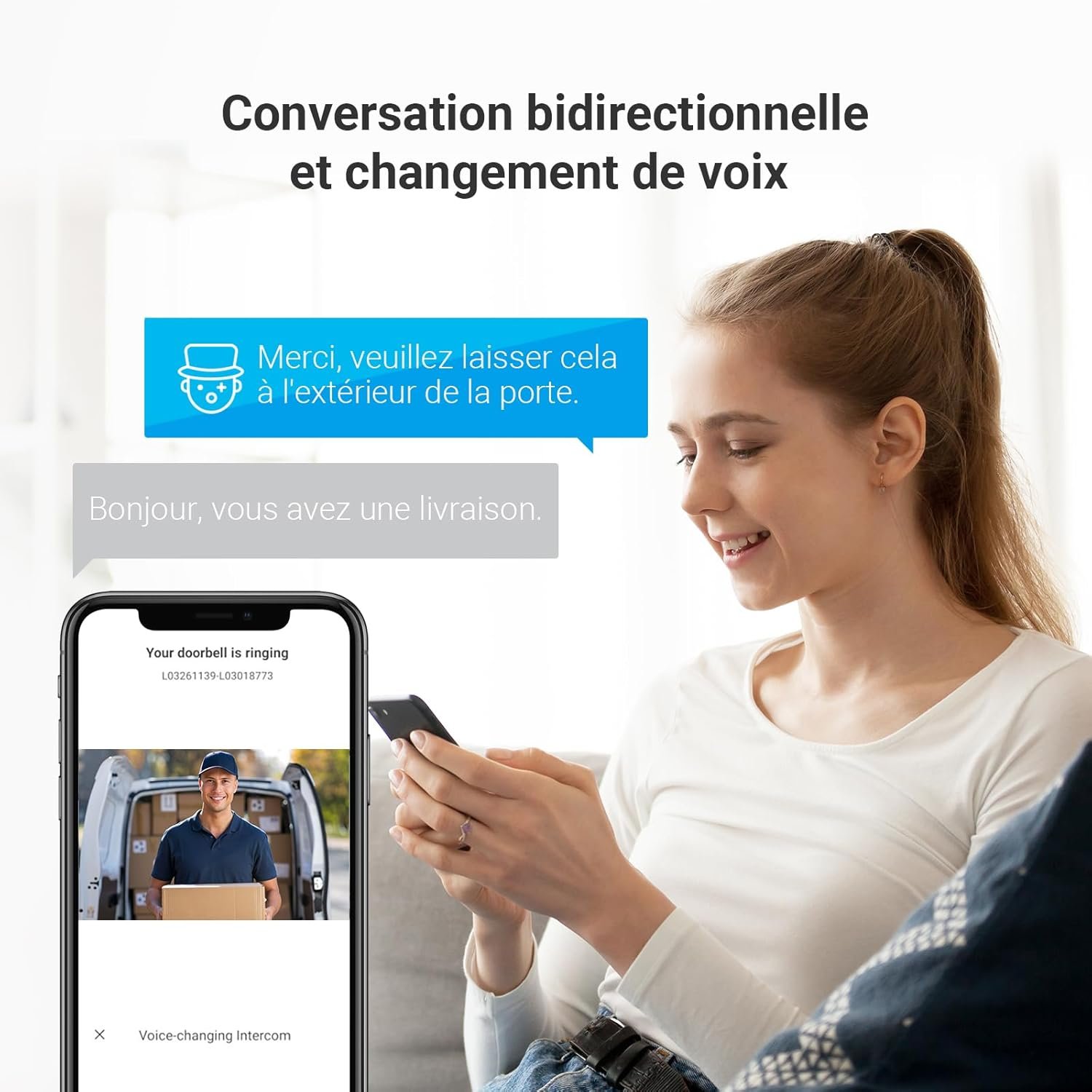 • 【Communication bidirectionnelle】Le visiophone EZVIZ CP5 vous assure de ne manquer aucun visiteur, même lorsque vous n’êtes pas chez vous. Vous pouvez rester connecté avec vos invités et ouvrir la porte à distance directement depuis votre téléphone portable, via l’application EZVIZ. De plus, il dispose d’une fonction de changement de voix, vous permettant de rester anonyme lorsque vous parlez à des inconnus, ajoutant ainsi une couche de protection.