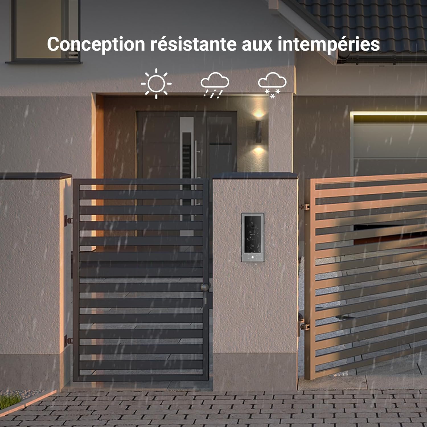 • 【Moniteur tactile tout-en-un pour communiquer et contrôler qui est à votre porte d’entrée】 L’écran tactile couleur de 7 pouces du visiophone vous permet de configurer et de gérer votre visiophone extérieur, de répondre aux visiteurs et d’enregistrer des clips vidéo importants. Lorsque quelqu’un sonne à votre porte, l’écran intérieur s’allume automatiquement et émet une sonnerie pour vous informer de sa présence. Vous avez également la possibilité de choisir votre sonnerie préférée.